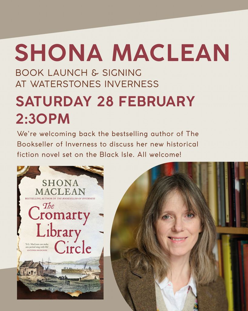 Next Saturday, 28th February, I am very much looking forward to chairing the conversation with Shona MacLean at the launch for her new book “The Cromarty Library Circle” at Waterstones in Inverness.